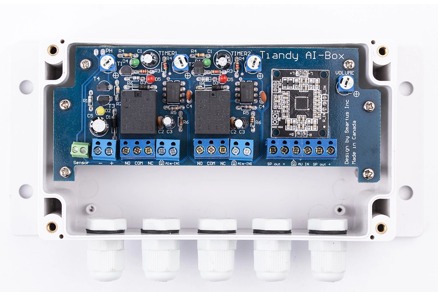 • 2 separate relays with an adjustable delay rate • Adjustable Light Sensor • Robust Material • Adjustable Alarm Volume • Waterproof Housing